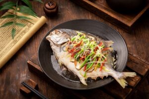 -Steamed golden pomfret fish