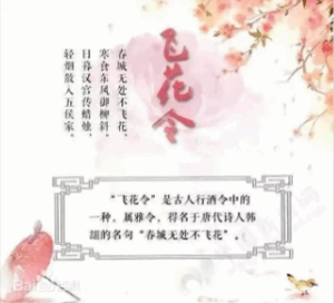 -Feihualing (飞花令) is a traditional Chinese poetic game that tests players’ knowledge of classical poetry.