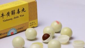 -Niuhuang Jiedu Wan, clears toxic heat and purges fire in liver. It is indicated for fever, inflamed throat or gums, red irritated eyes, earache, toxic swellings, toothache, headache, dizziness, and oral ulcers.